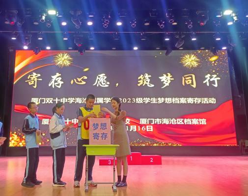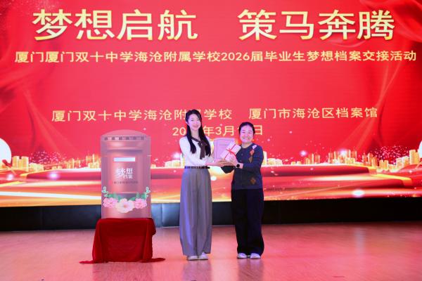 三年前,厦门市海沧区档案馆与厦门双十海沧附属学校联合开展“梦想档案寄存”活动,同学们将青春心愿、成长寄语与中考目标悉心封存,交由档案馆珍藏。时光匆匆,三年之约如期而至。在中考倒计时100天之际海沧区档案馆将所有梦想档案正式归还学校,并举行梦想启封仪式。活动现场抽取了幸运同学,赠送档案馆精心编制的书籍,以档案文化助力青春成长。同时,仪式上还播放了同学们3年前诵读心愿的声像档案,重温年少时光,回望追梦之路。档案载初心,青春赴山海;百日再冲刺,少年显担当。