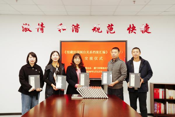 2026年1月12日厦门市海沧区档案馆与中共厦门市海沧区委台办开展《馆藏民国闽台关系档案汇编》交接仪式